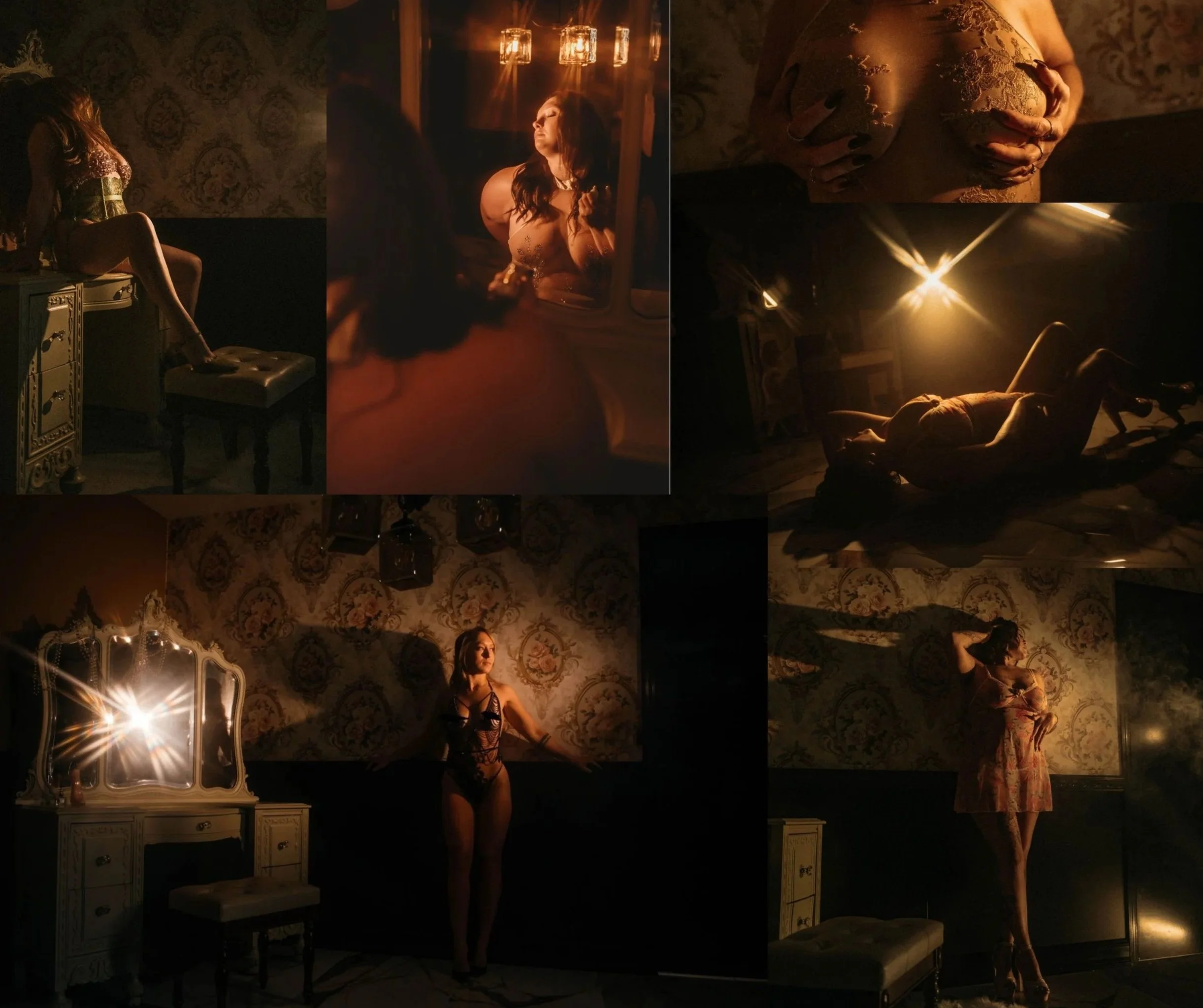 The Kierra Josette Artistry studio is a fully furnished, 4,000sqft DREAM! Outside of the boudoir bedroom set, there are over 10 different individual scenes to create in with endless possibilities. We have spicy bondage in the VIP ROOM, romantic dreams in the Vintage Vanity, dark romance in The Study and so much more. There truly is a space for EVERYBODY here at KJA.